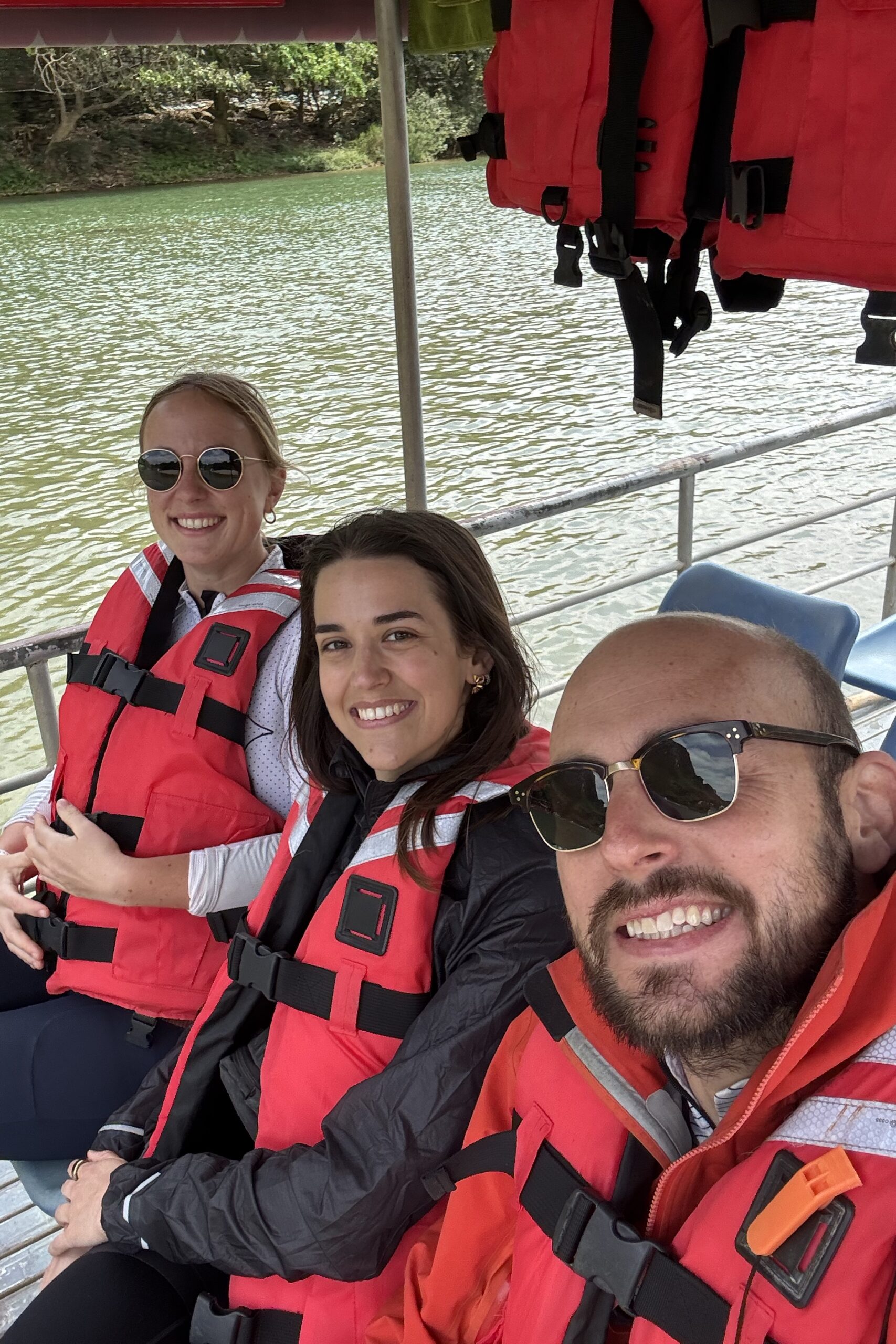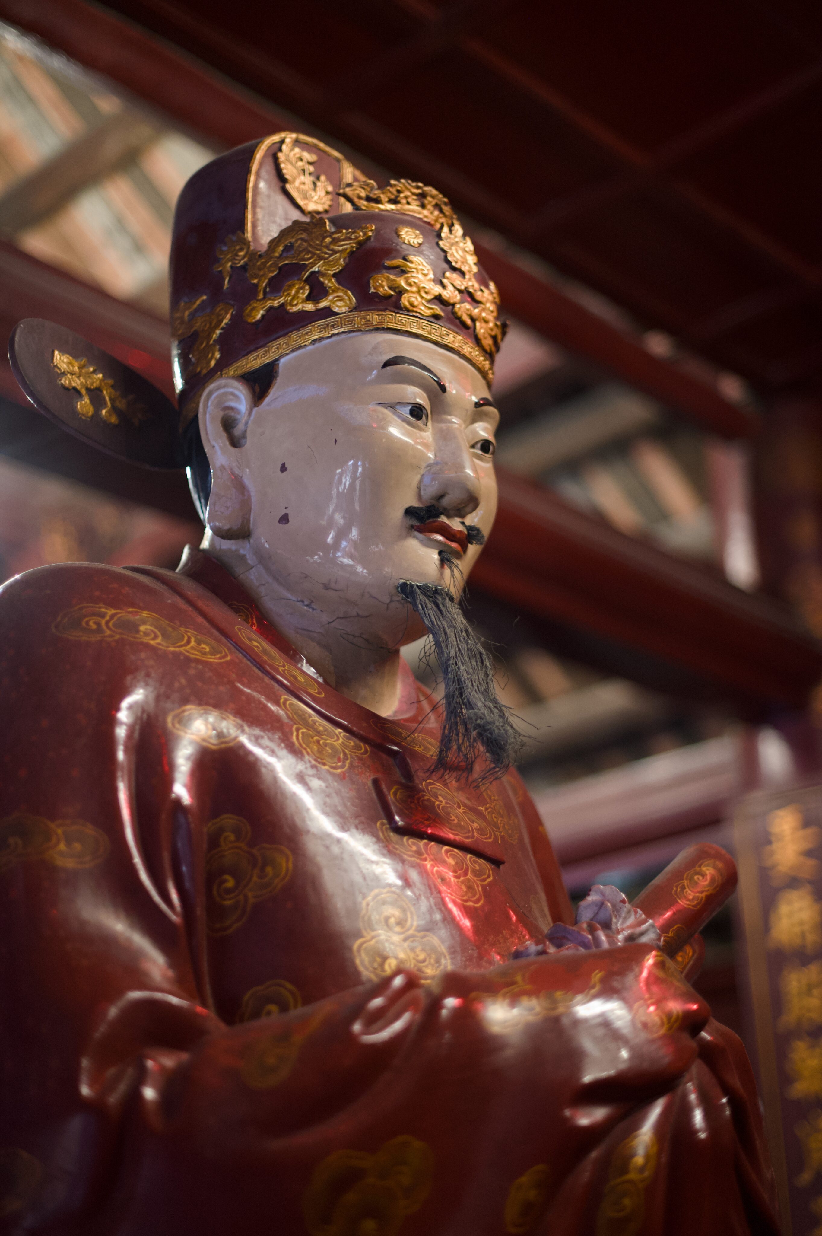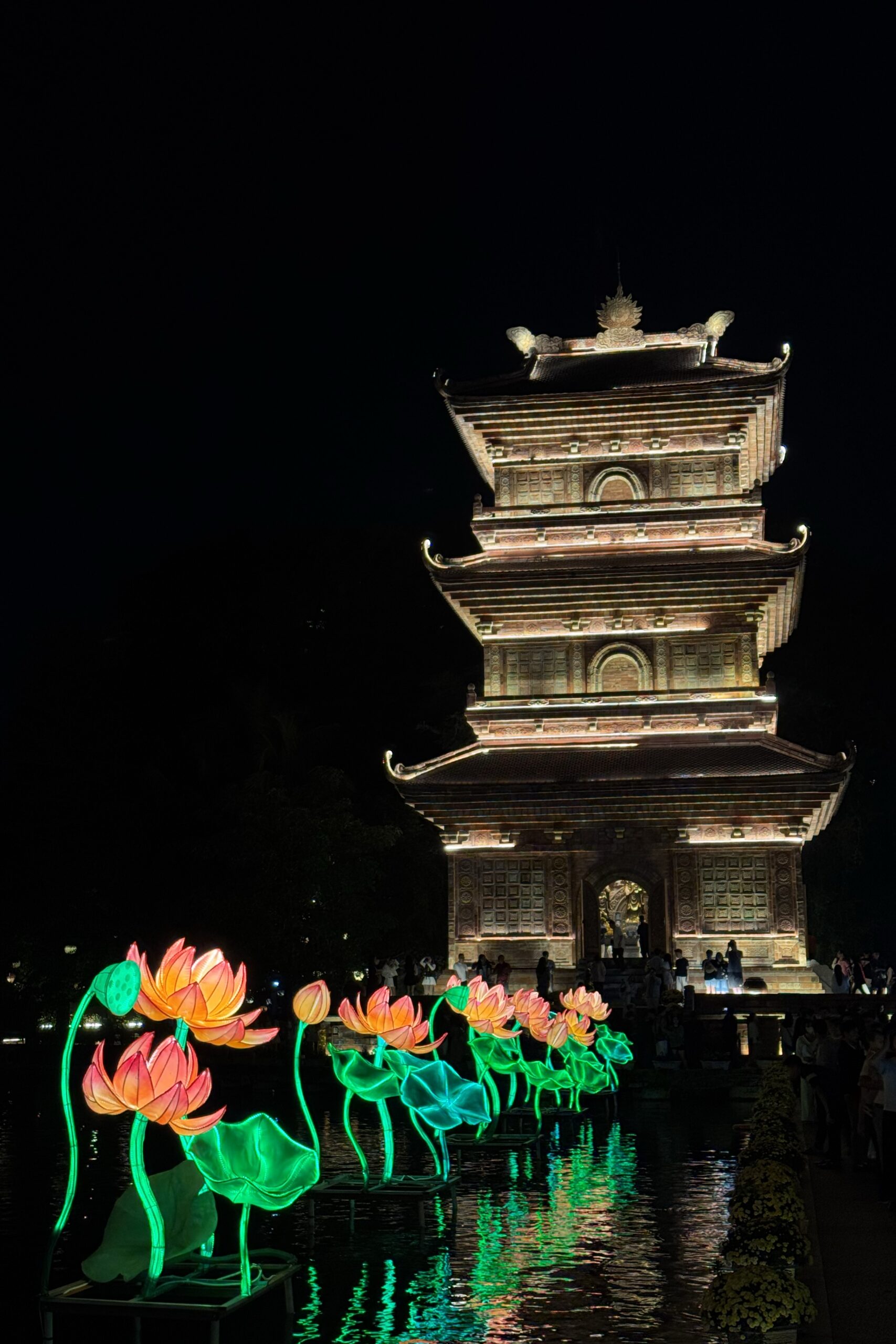 Von Mai Chau fahren wir Richtung Ba Vì, das nördlich von Hanoi liegt. Ein beliebtes Tagesausflugsziel von Hanoi aus. Unterwegs kommen wir an einer Crocs-Fabrik vorbei, ein auch in Vietnam sehr beliebter Schuh. Ansonsten haben wir während unserer Zeit in Vietnam weniger Produktionsstätten gesehen als erwartet. Bei Ba Vì ragen drei hohe Berge aus der flachen Ebene, wobei der höchste 1‘296 Meter hoch ist. Auf zwei der drei Gipfel stehen beeindruckende Tempel, einer davon ehrt Hồ Chi Minh. Um die beiden Tempel zu erreichen, müssen insgesamt 1’000 Treppenstufen erklommen werden. Begleitet wird der Aufstieg durch die Ballade von Hồ Chi Minh, die aus den Lautsprechern entlang der Treppe ertönt. Die Vietnames:innen erklimmen die Treppen mit Geschenken für den Altar und gewisse geniessen nach erfolgreichem Aufstieg ein ausgewogenes Mittagessen mit vietnamesischem Wein.
