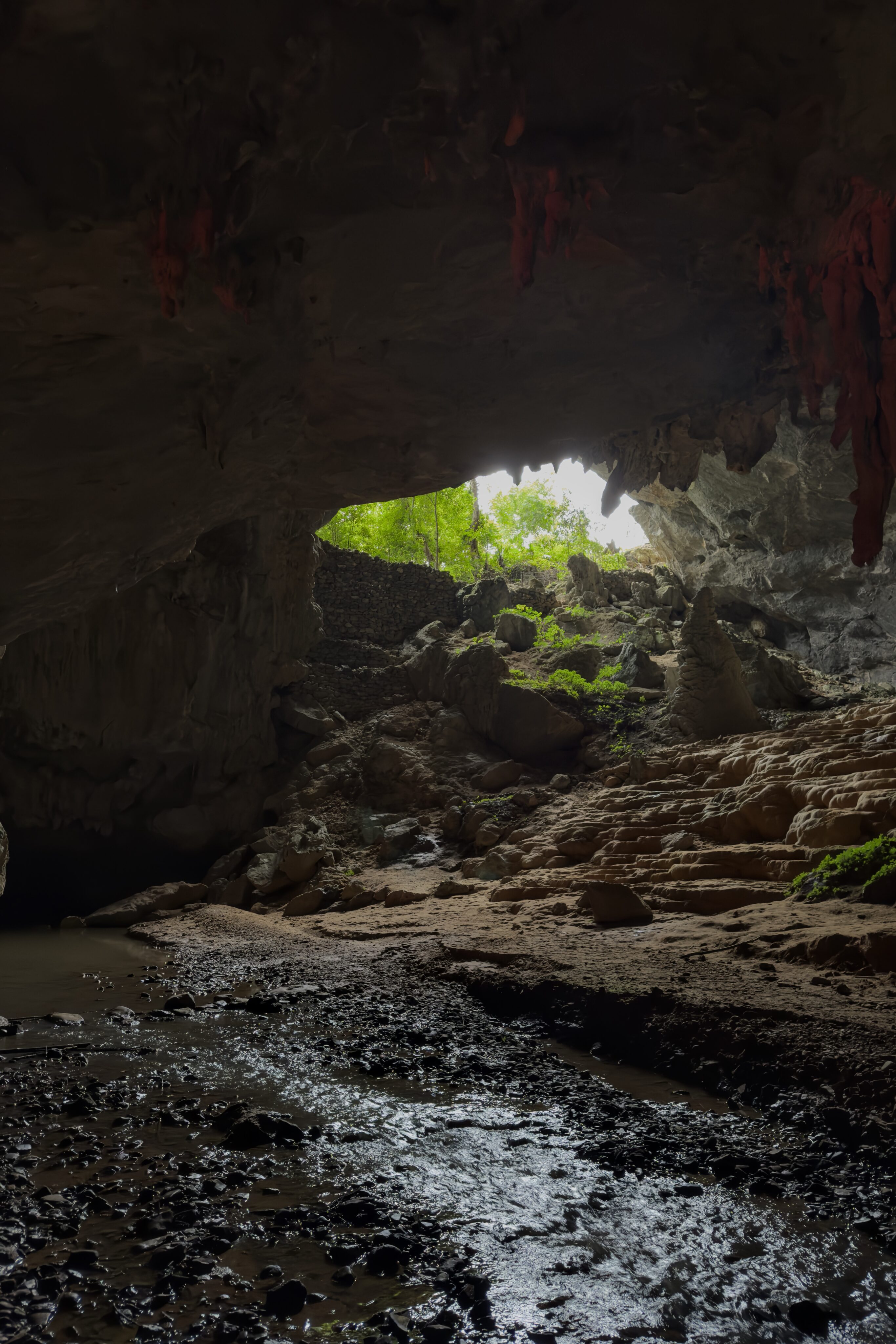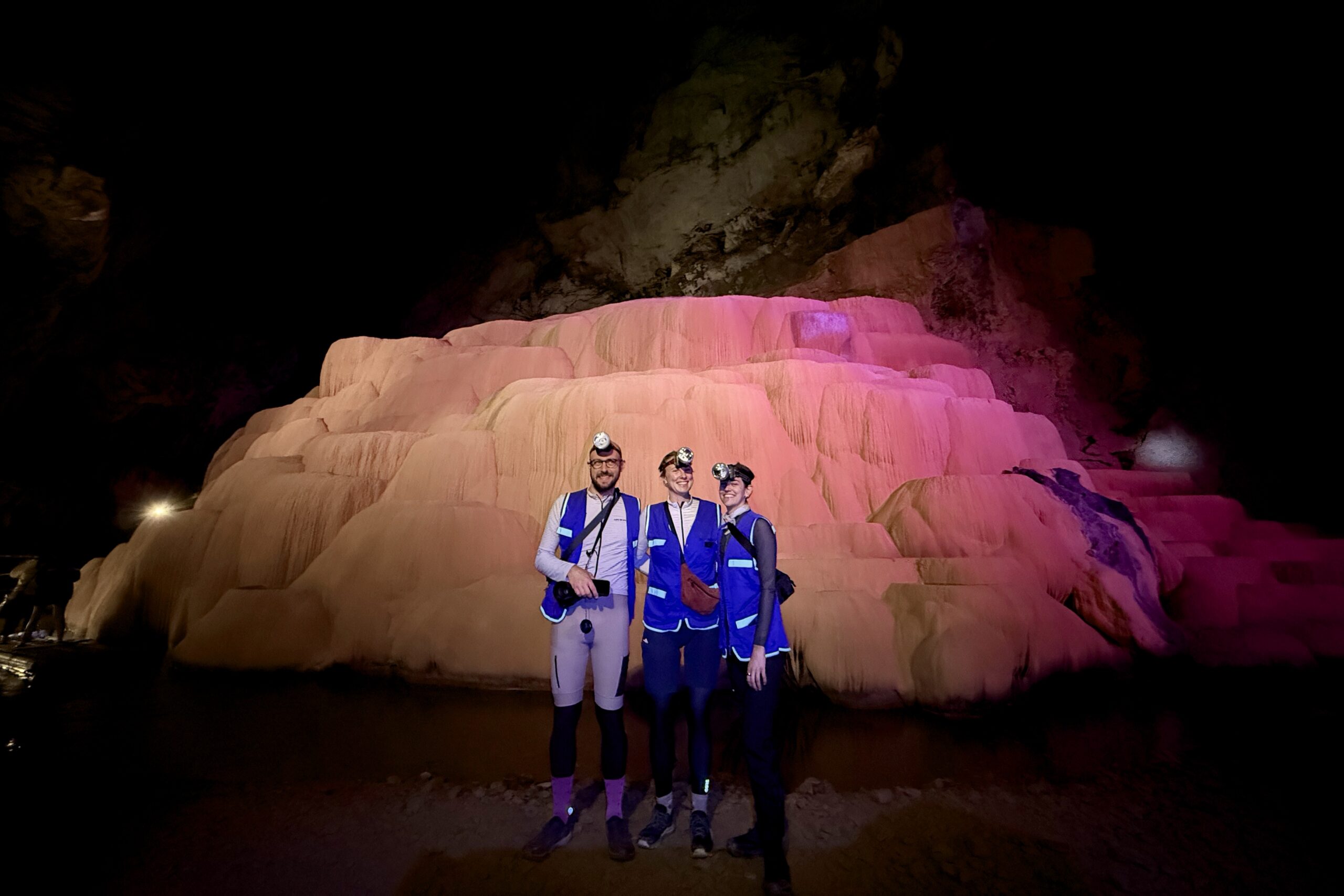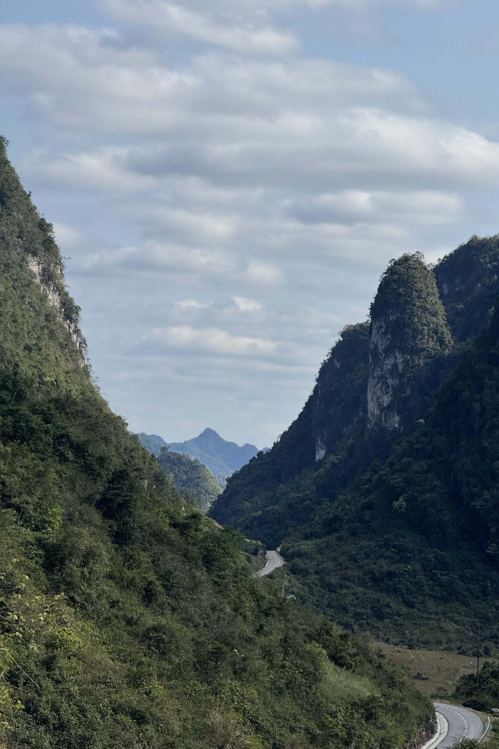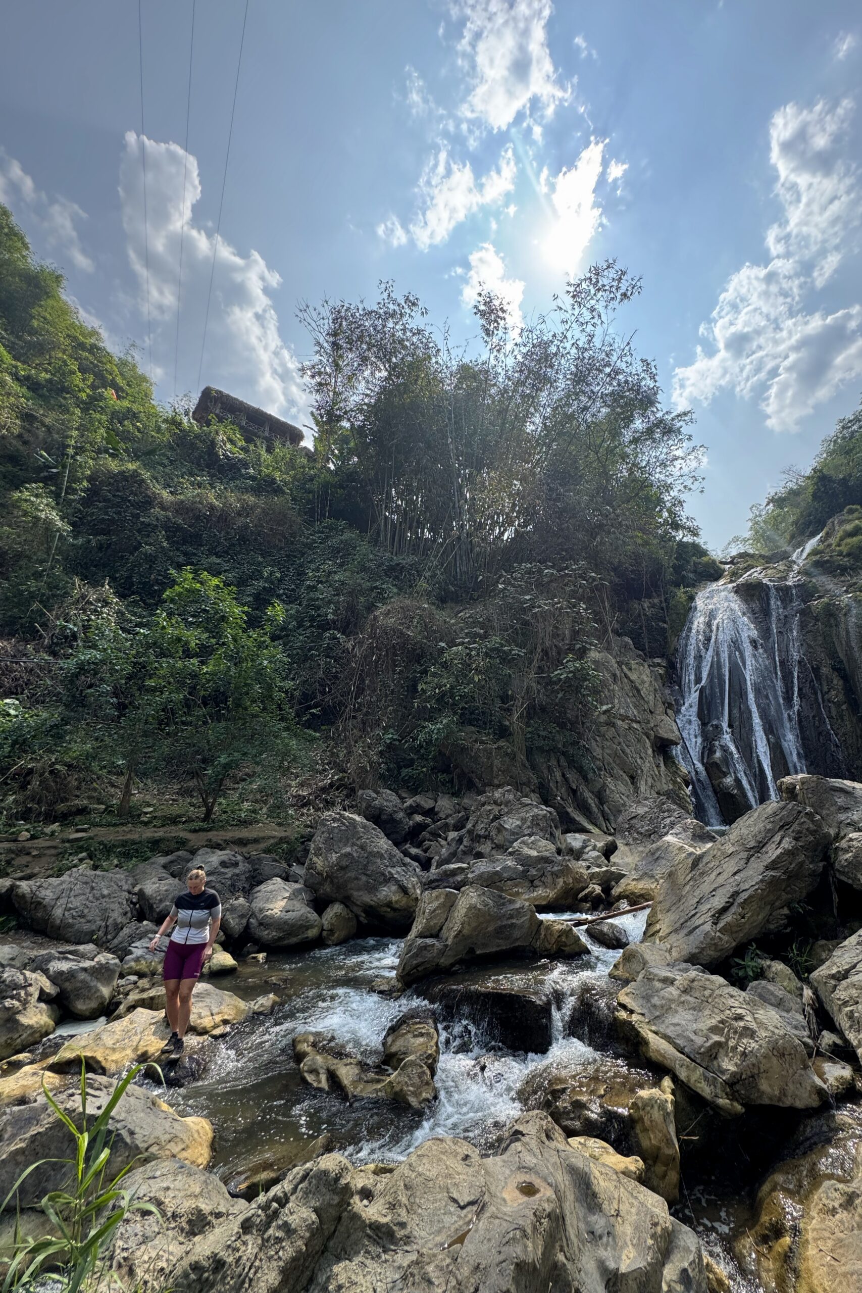 Cao Bằng ist ein deutlich lebendiger Ort als Ba Vì und der Ausgangsort für viele Tagestouren in der Region. Das schlechte Wetter kommt leider mit uns mit, so fahren wir am ersten Tag im Regen Richtung chinesische Grenze. Auch hier ist die Region stark durch die Karstlandschaft geprägt, die Häuser erinnern einem aber eher an das ländliche China und unterscheiden sich stark von jenen im Nordwesten von Vietnam. Wir besuchen eine der vielen Karsthöhlen der Region und bestaunen die riesigen Stalaktiten und Stalagmiten. Die höchste der zusammenhängenden Höhlen ist 60 Meter hoch. Beeindruckende Dimensionen und Formen, die wir in einer 1,5-stündigen Führung bestaunen. Die Nacht verbringen wir direkt an der Grenze und besuchen am nächsten Tag bei schönstem Wetter den wunderschönen Wasserfall, Bản Giốc, der die Grenze zwischen China und Vietnam bildet. Zu unserem Erstauen hat es auf beiden Seiten keine gross sichtbare Militärpräsenz und es fahren von beiden Seiten die gleichen Boote in die Nähe des Wasserfalls.