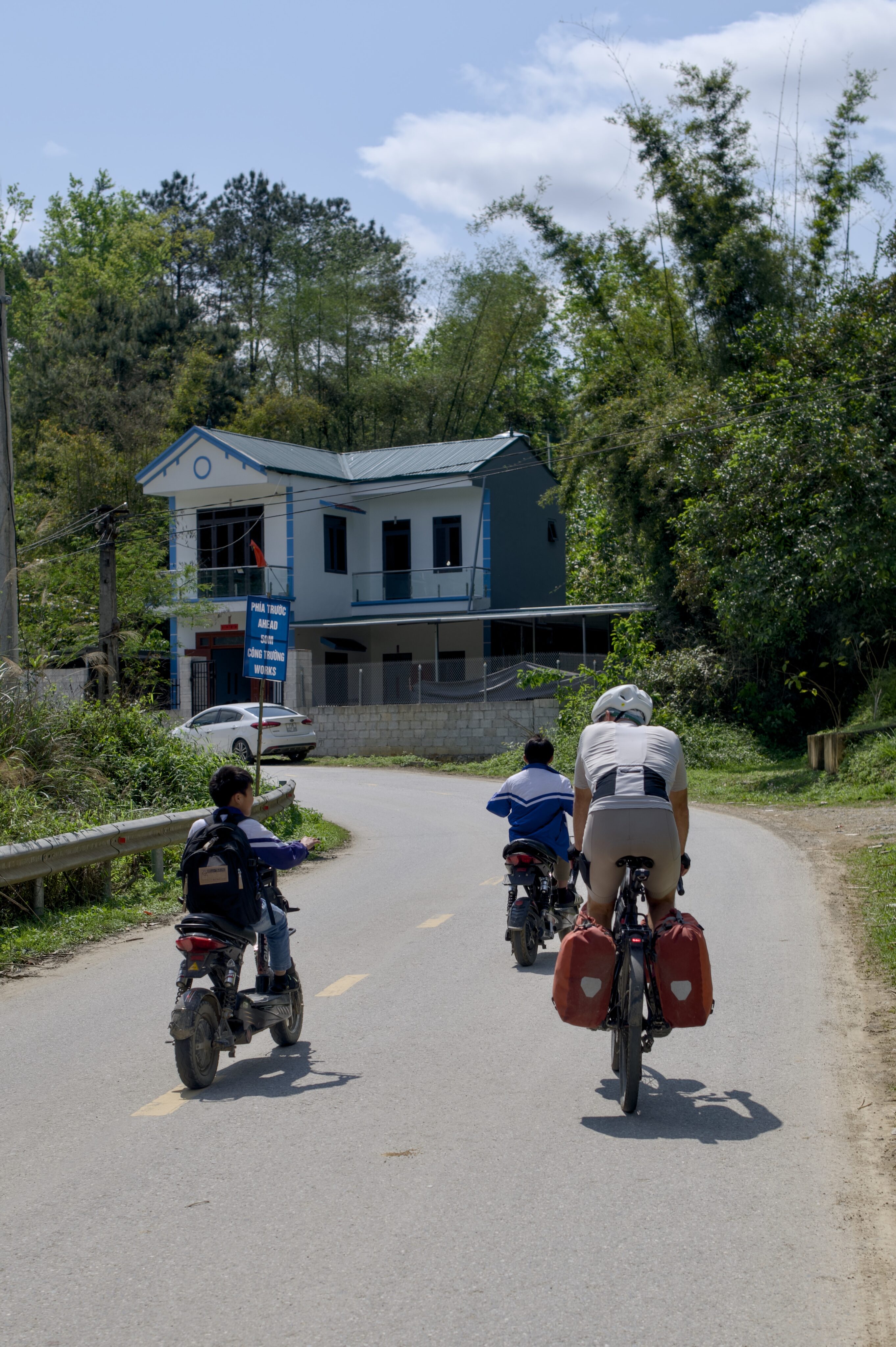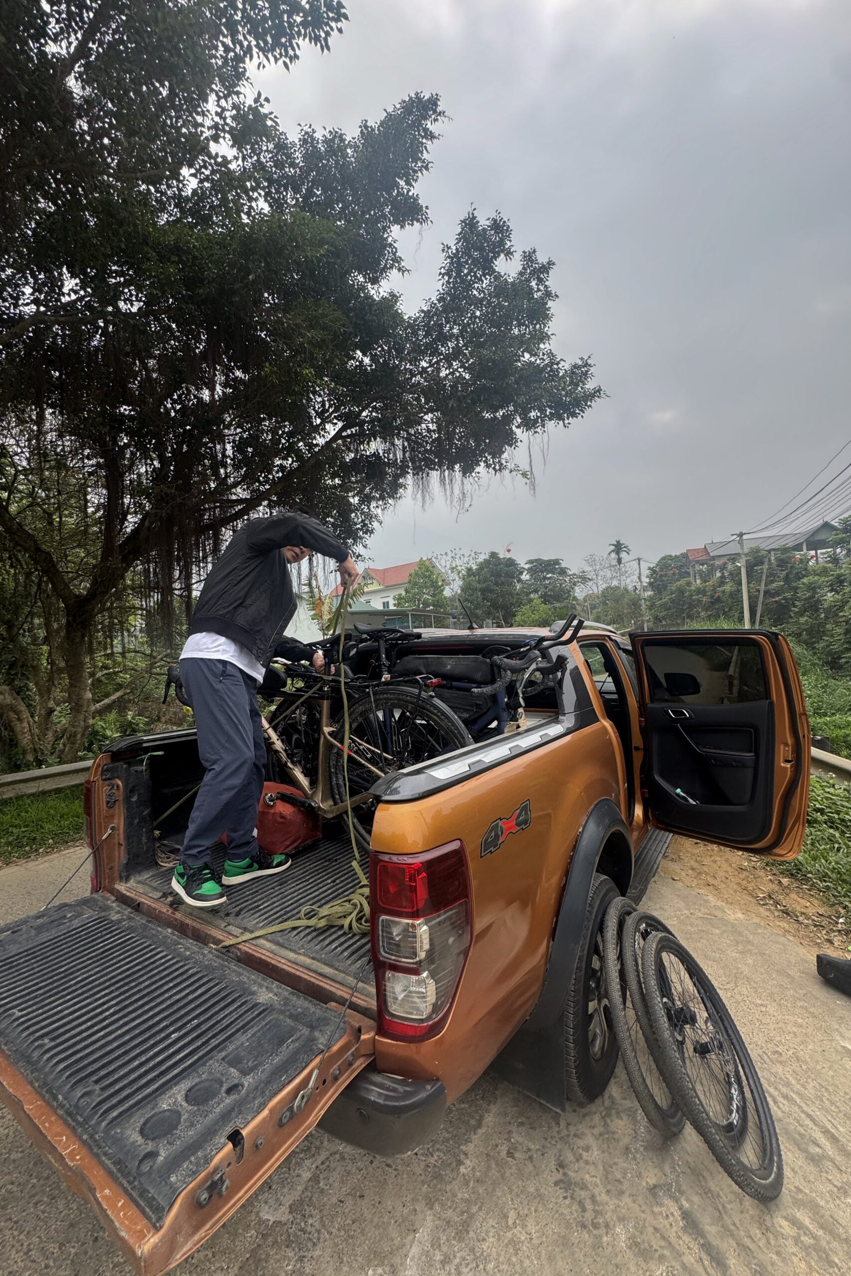 Die spärliche Auswahl an Restaurants im Ort und unsere abgelegene Unterkunft führen dazu, dass wir Pasta einkaufen und zur Abwechslung für uns kochen. In den etwas grösseren und auch touristischen Orten gibt es jeweils diverse Essenslokale und Kaffees, ab von den üblichen Pfaden und in den ländlicheren Gegenden fällt das Angebot aber eher spärlich aus. Die regionalen Unterschiede erscheinen uns in Vietnam deutlich ausgeprägter als in den Regionen, die wir in Taiwan und China mit dem Velo durchquert haben. Wir diskutieren unsere weiteren Reisepläne für Vietnam und machen erneut eine Änderung. Aufgrund der anhaltenden schlechten Wetterlage und des vielen Verkehrs entscheiden wir uns gegen den ursprünglich geplanten Ha Giang Loop. Stattdessen wollen wir den Cao Bằng Loop im Nordosten des Landes fahren. Von Ba Vì organisieren wir uns einen Pickup-Transport nach Cao Bằng.