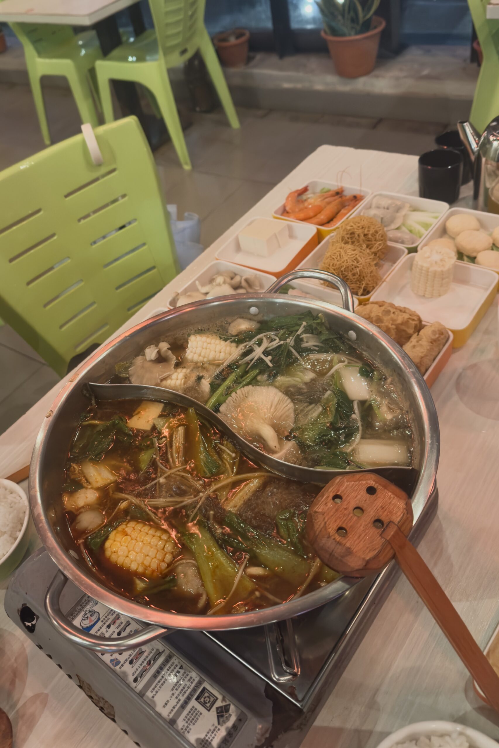 Am Abend probieren wir verschiedene Gerichte auf einem Nachtmarkt aus. Der Taxifahrer, der uns zum Tempel gefahren hat, gab uns diverse Essenstipps und hat uns insbesondere den Reservoir Garden Hawker Arcade Market empfohlen. Wir wurden nicht enttäuscht! Ein kleines Feuerwerk anlässlich des bevorstehenden Jahreswechsel gibt es oberhalb des extra beleuchtenden Tempel auch noch zu sehen.